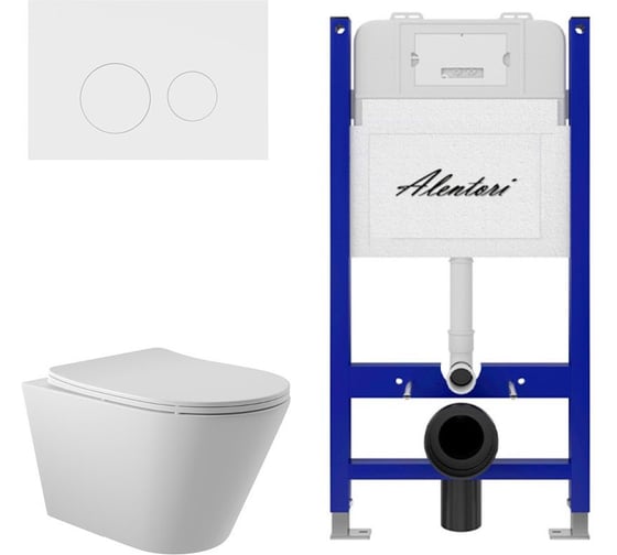 Комплект ALENTORI Инсталляция для унитаза SISTEMA 50 AL.SIS33T с клавишей CHIAVE L, белый мат AL.CHI019WM + Унитаз Long 525х360 безободковый, Vortex (Торнадо), Soft-Close, белый мат, конус AL.SIS33TAL.CHI019WMCV2120