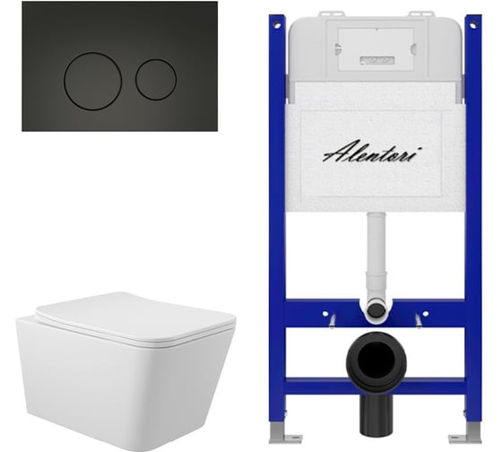 Комплект ALENTORI Инсталляция для унитаза SISTEMA 50 AL.SIS33T с клавишей CHIAVE L, черный мат AL.CHI103BM + Унитаз Long 520х370 безободковый, Vortex (Торнадо), Soft-Close, белый мат, квадрат AL.SIS33TAL.CHI103BMQV2120