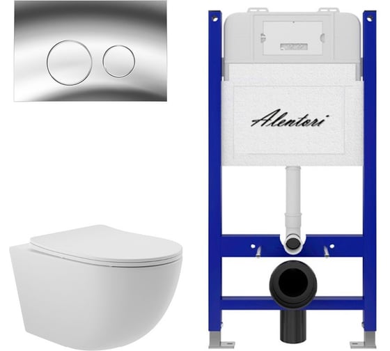 Комплект ALENTORI Инсталляция для унитаза SISTEMA 50 AL.SIS33T с клавишей CHIAVE L, хром глянец AL.CHI102CH + Унитаз Long 525х360 безободковый, Vortex (Торнадо), Soft-Close, белый мат, овал AL.SIS33TAL.CHI102CHOV2120