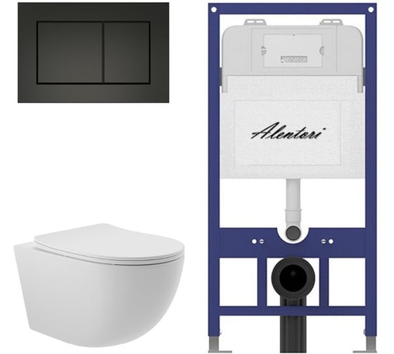 Комплект ALENTORI Инсталляция для унитаза SISTEMA 52 AL.SIS11T с клавишей CHIAVE A, черный мат AL.CHI013BM + Унитаз Long 525х360 безободковый, Vortex (Торнадо), Soft-Close, белый мат, овал AL.SIS11TAL.CHI013BMOV2120