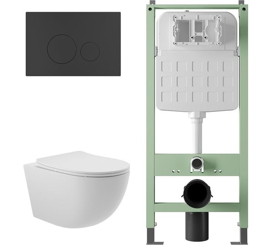 Комплект ALENTORI Инсталляция SISTEMA, панель смыва с круглыми кнопками, черный матовый + Унитаз подвесной Long 525х360 безободковый, Vortex (Торнадо), сиденье с микролифтом, белый матовый, форма овал ALS.SIS1101.MBOV2120