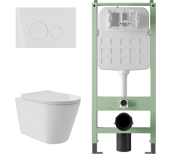 Комплект Alentori Инсталляция SITEMA, Панель смыва с круглыми кнопками, белый матовый + Унитаз подвесной Long 520*365 безободковый, Vortex, сиденье Soft-Close, белый глянцевый, форма конус ALS.SIS1101.WHCV0210
