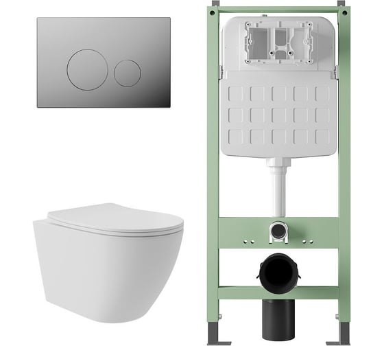 Комплект Alentori Инсталляция SITEMA, Панель смыва с круглыми кнопками, хром + Унитаз подвесной Long 520*365 безободковый, Vortex, сиденье Soft-Close, белый матовый, форма овал ALS.SIS1101.CROV0220