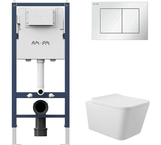 Комплект AM.PM I012709.0201 PrimeFit инсталляция для унитаза с клавишей PrimeFit S, бел глянц + Унитаз Long 520х370 безободковый, Vortex (Торнадо), сиденье Soft-Close, белый глянцевый, квадрат I012709.0201QV2110