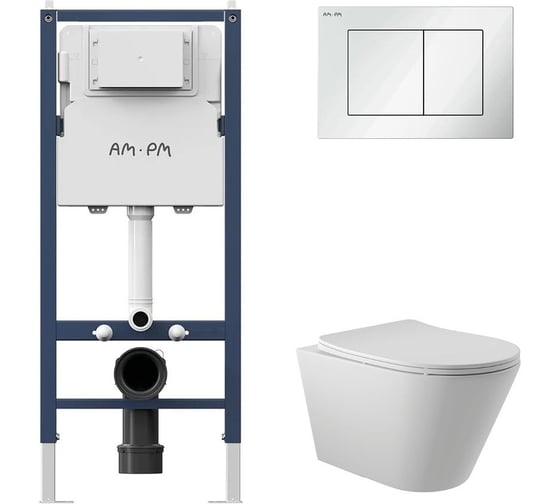 Комплект AM.PM I012709.0201 PrimeFit инсталляция для унитаза с клавишей PrimeFit S, бел глянц + унитаз Long 525х360 безободковый, Vortex (Торнадо), сиденье Soft-Close, белый матовый, конус I012709.0201CV2120