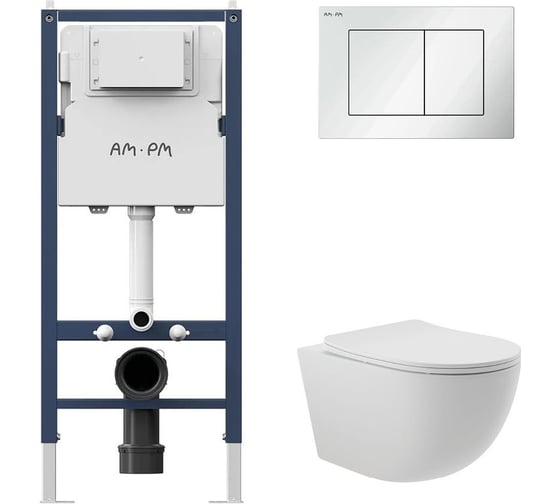 Комплект AM.PM I012709.0201 PrimeFit инсталляция для унитаза с клавишей PrimeFit S, бел глянц + унитаз Long 525х360 безободковый, Vortex (Торнадо), сиденье Soft-Close, белый матовый, овал I012709.0201OV2120