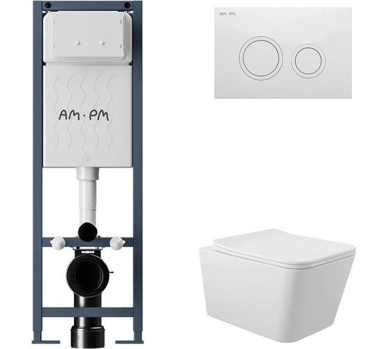 Комплект AM.PM I012711.0101 ErgoFit инсталляция для унитаза с клавишей ErgoFit L пластик, белый глянцевый + унитаз Long 520х370 безободковый, Vortex (Торнадо), Soft-Close, белый матовый, квадрат I012711.0101QV2120