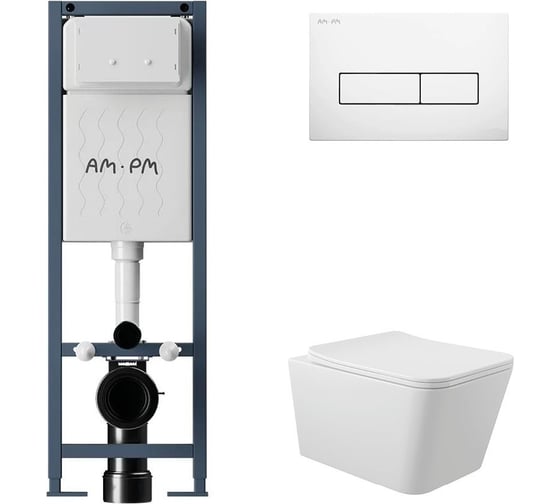 Комплект AM.PM I012711.0301 ErgoFit инсталляция для унитаза с клавишей ErgoFit M пластик, белый глян + унитаз Long 520х370 безободковый, Vortex (Торнадо), Soft-Close, белый глян, форма квадрат I012711.0301QV2110