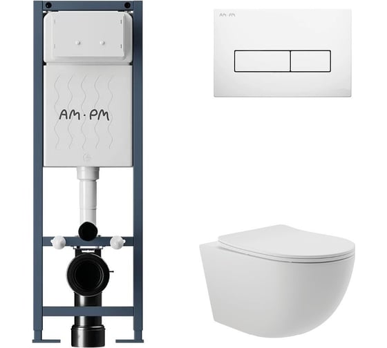 Комплект AM.PM I012711.0301 ErgoFit инсталляция для унитаза с клавишей ErgoFit M пластик, белый глянцевый + унитаз Long 525х360 безободковый, Vortex (Торнадо), сиденье Soft-Close, белый матовый, овал I012711.0301OV2120