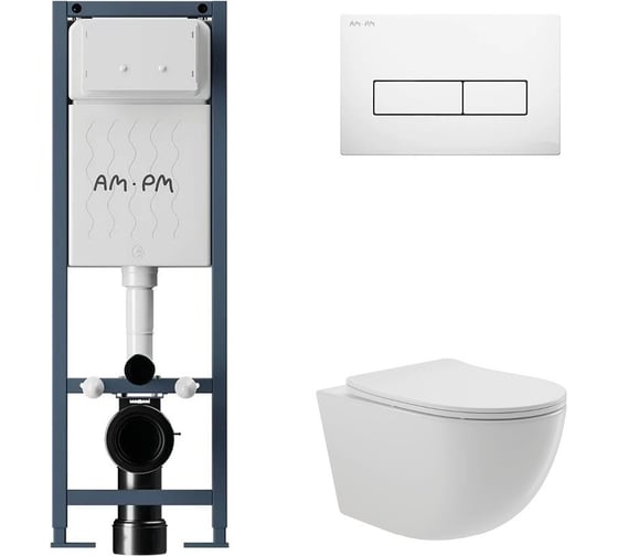 Комплект AM.PM I012711.0301 ErgoFit инсталляция для унитаза с клавишей ErgoFit M пластик, белый глянцевый + унитаз Long 525х360 безободковый, Vortex (Торнадо), Soft-Close, белый глянцевый, овал I012711.0301OV2110