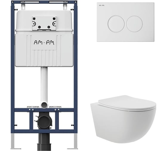 Комплект AM.PM MasterFit инсталляция для подвесного унитаза с клавишей ProC L, белый глянцевый + унитаз подвесной Long 525х360 безободковый, Vortex (Торнадо), Soft-Close, белый матовый, форма овал I012710.0101OV2120