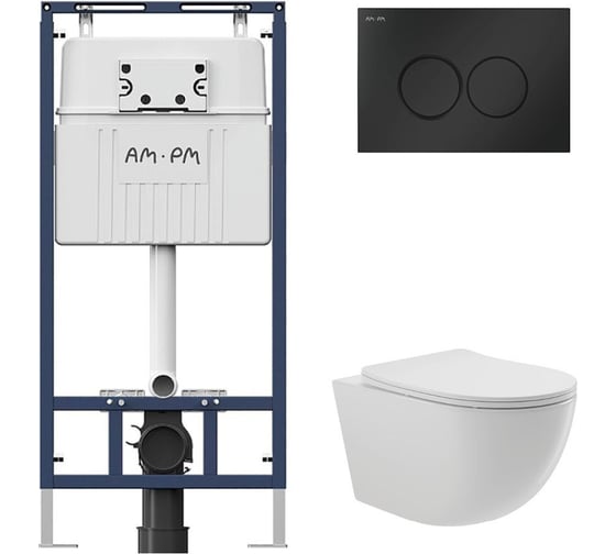 Комплект AM.PM MasterFit инсталляция для подвесного унитаза с клавишей ProC L, черный матовый + унитаз подвесной Long 525х360 безободковый, Vortex (Торнадо), Soft-Close, белый глянцевый, форма овал I012710.0138OV2110