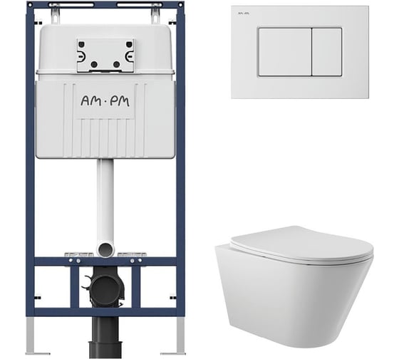 Комплект AM.PM MasterFit инсталляция для подвесного унитаза с клавишей ProC S, белый глянцевый + унитаз подвесной Long 525х360 безободковый, Vortex (Торнадо), Soft-Close, белый глянцевый, форма конус I012710.0201CV2110