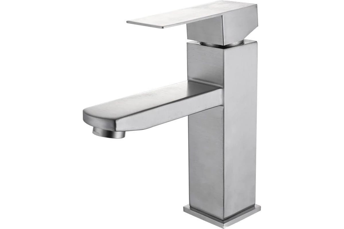Комплект Bauedge BAU 4 в 1: раковина над стиральной машиной BAU Stil 60х60 литьевой мрамор, кронштейны, сифон и смеситель Hotel Still, нержавеющая сталь XMY0067