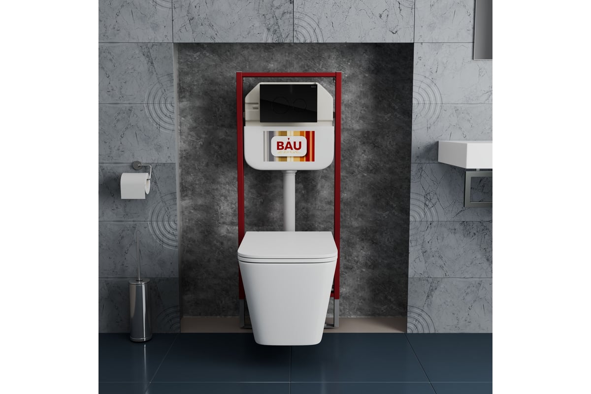 Комплект Bauedge BAU 6 в 1: рамная инсталляция BAU NEO 45, унитаз подвесной безободковый с вихревым смывом, OWL 1975 Hurricane3, сиденье дюропласт микролифт, кнопка смыва NEO45700-TOWLT190403S-Q00011