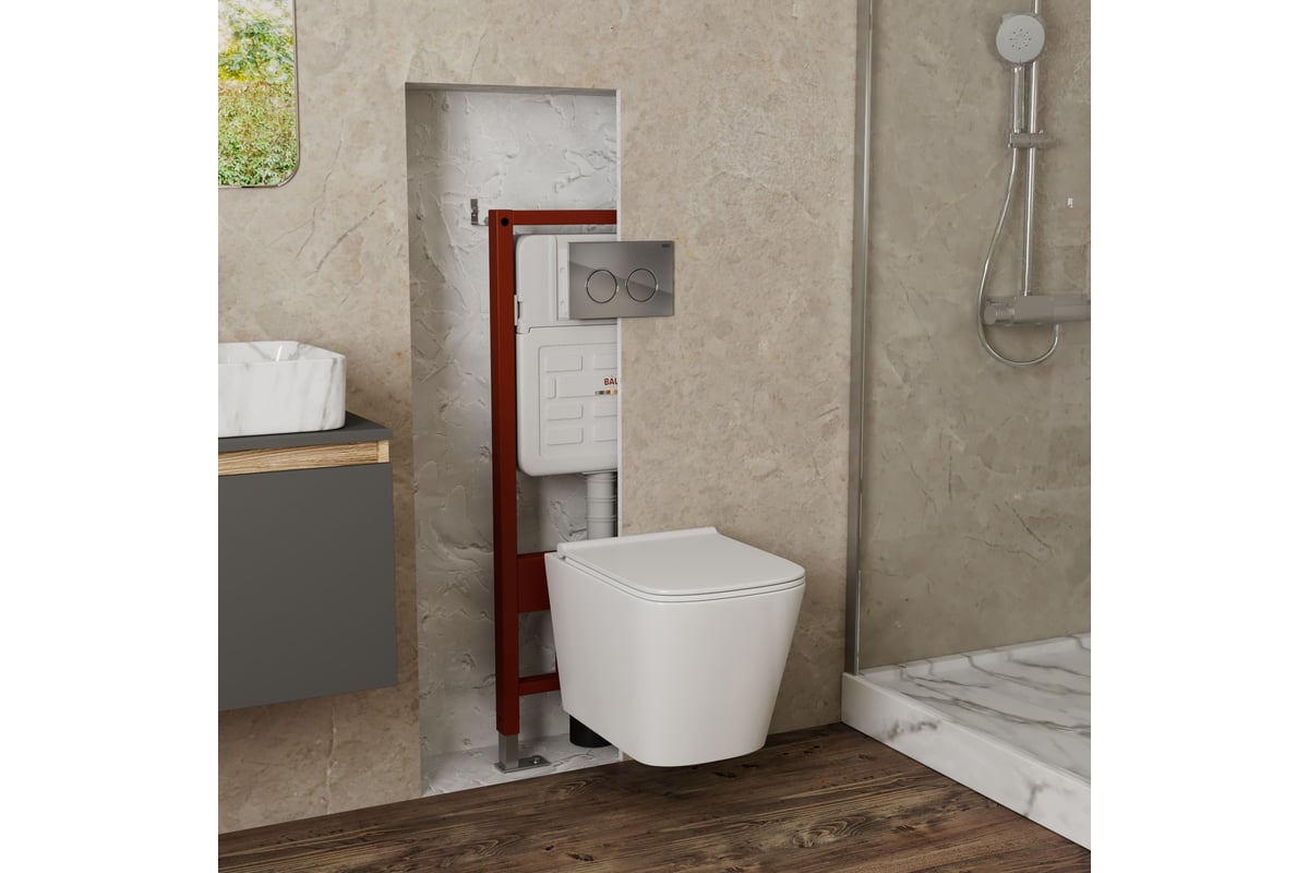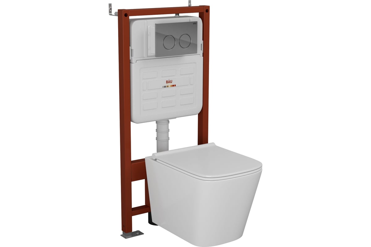 Комплект Bauedge BAU 6 в 1: усиленная инсталляция BAU IDEAL, унитаз подвесной безободковый Bau Stil PRO, сиденье микролифт, клавиша BAU Round, хром E458103-NS0001-PRO-E00113