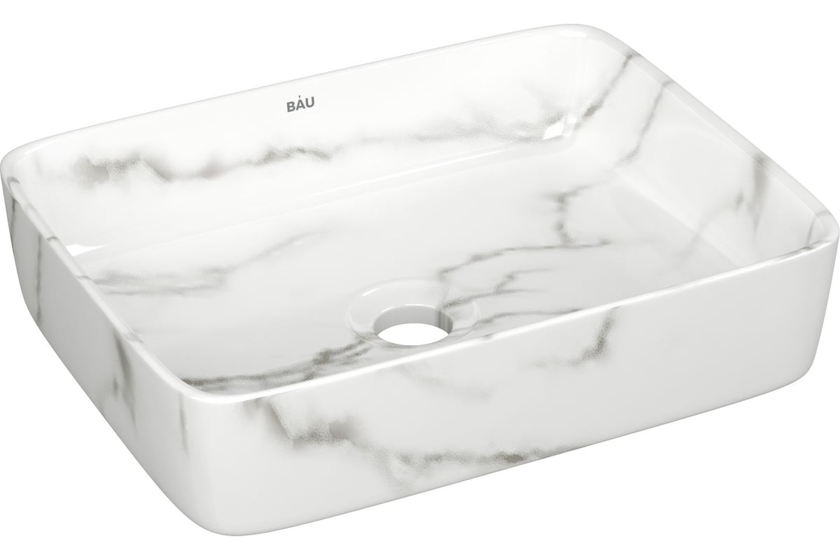 Комплект Bauedge тумба Bau Dream Blackwood 80, 1 ящик, дверца, раковина прямоугольная BAU Hotel 48х37, мрамор, выпуск клик клак, хром BD3026