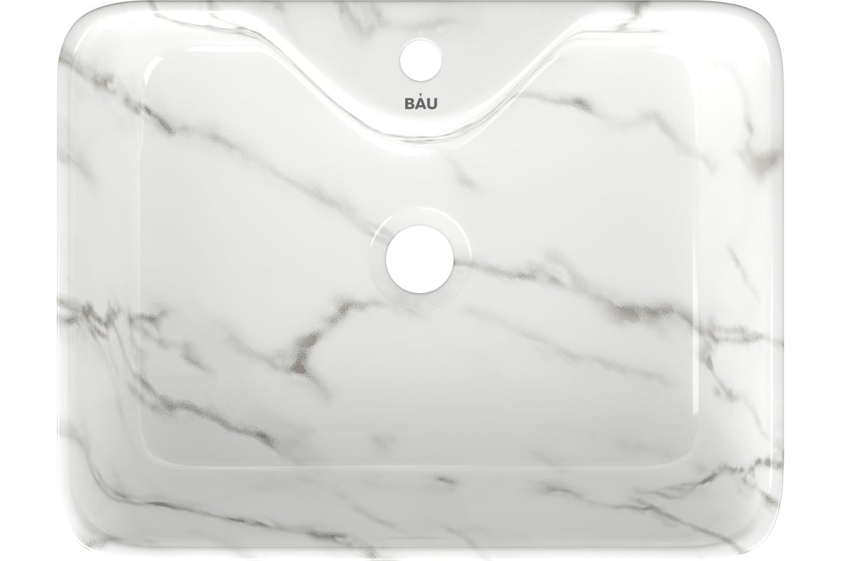 Комплект Bauedge тумба Bau Dream Blackwood графит 60, 1 ящик, раковина прямоугольная BAU Cerama 48х37, мрамор, смеситель Hotel Stil, нерж сталь BD3080
