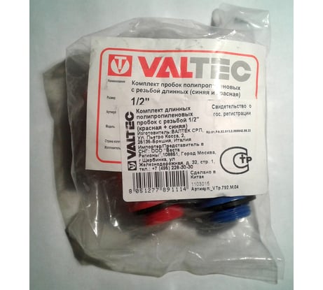 Сопутствующие товары для комплекта полипропиленовых пробок Valtec с резьбой 1/2 /красная + синяя/