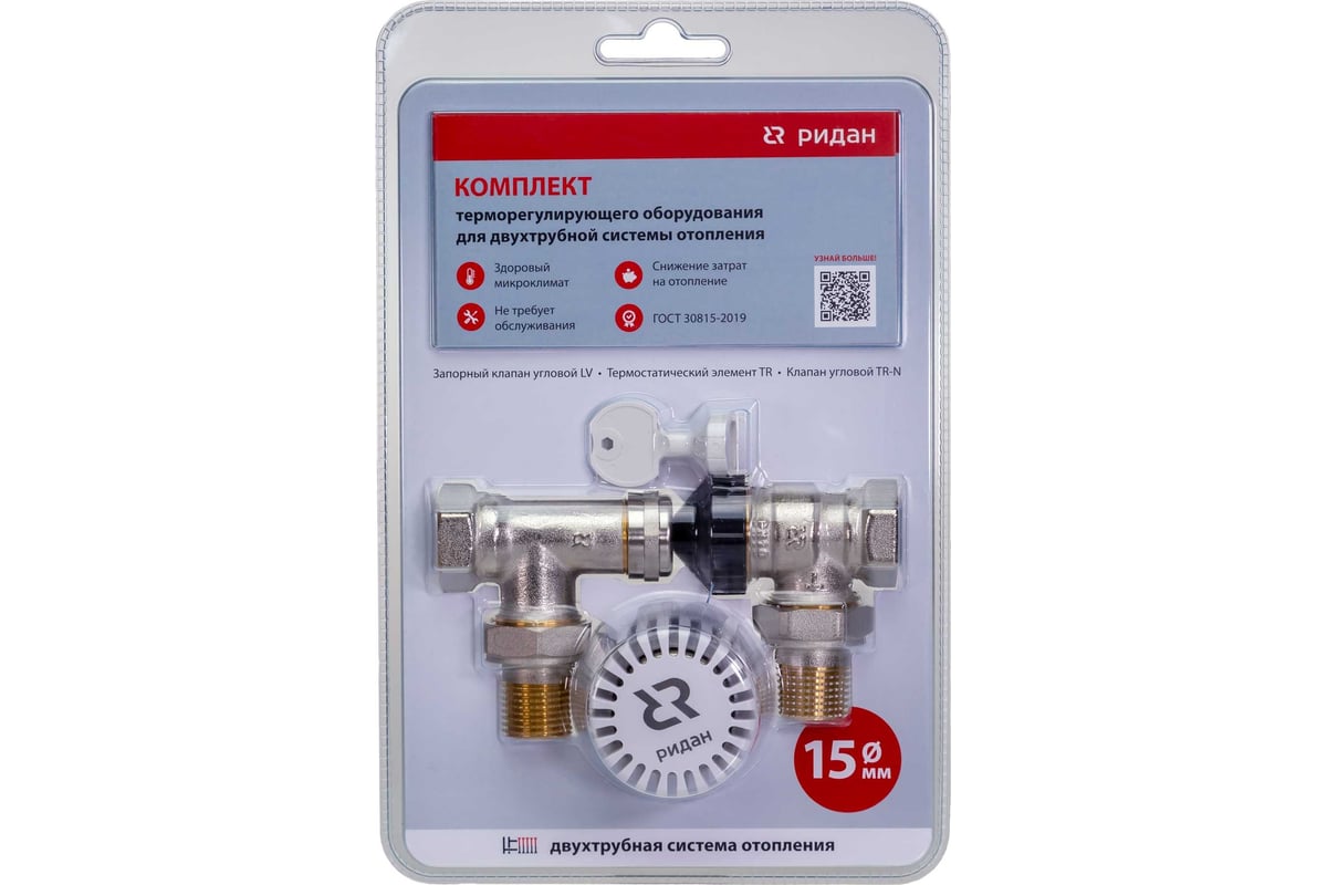 Комплект для двухтрубной системы Ридан термостатический элемент и клапан, запорный клапан 1/2" прямой 013G7053R