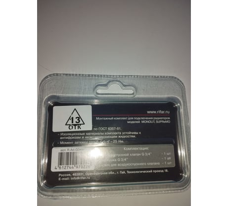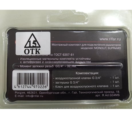Комплект для подключения радиатора RIFAR MONOLIT/SUPReMO 3/4 R.Ad.G34MS На страницу товара505 ₽