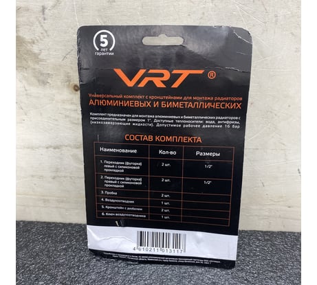 Отзывы о комплекте для радиатора VRT 1/2'' с двумя кронштейнами 554158
