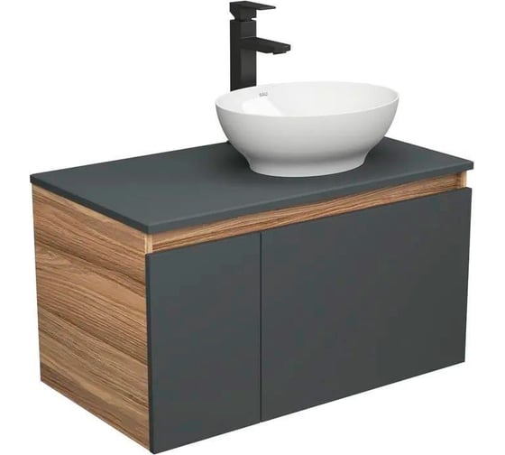 Комплект для ванной Bauedge 3 предмета (тумба Bau Dream 80, графит + раковина накладная BAU Nimb 41х33, смеситель высокий Hotel Black) BD2276