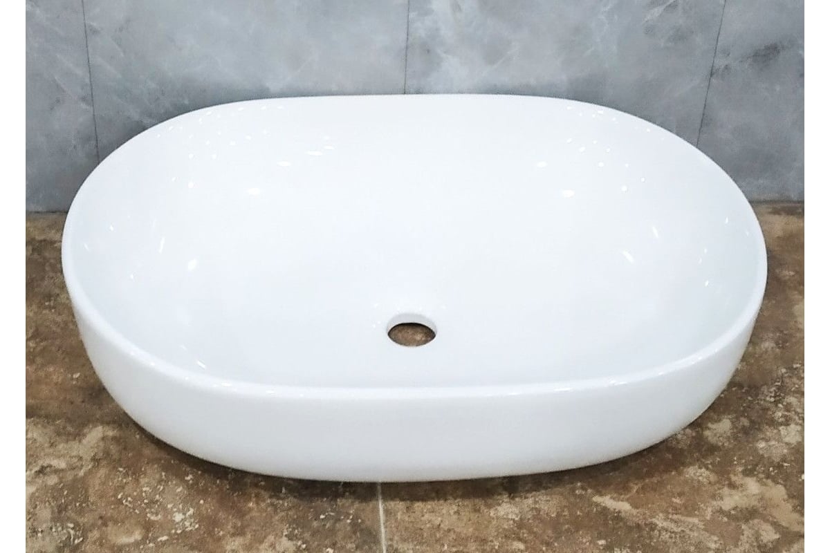 Раковина белая BAU Nimb 59х40 устанавливается на столешницу, тумбочку или стол и в отличие от встраиваемой, не врезается в ее поверхность. Выполнена из санфаянса, плюсы которого: