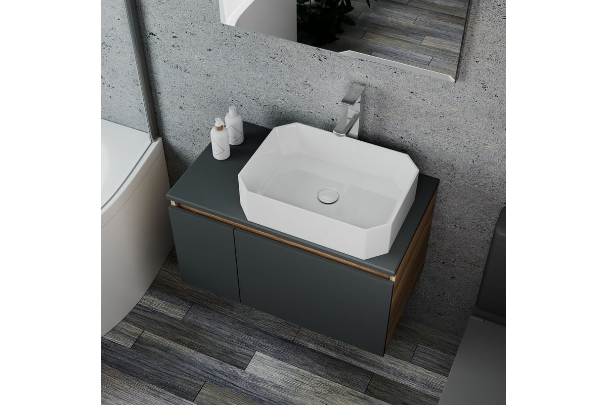 Комплект для ванной Bauedge 4 предмета (Тумба подвесная Bau Blackwood 80 графит + Раковина BAU Hotel 51x37 + Смеситель Hotel Still, выпуск белый) BD2726
