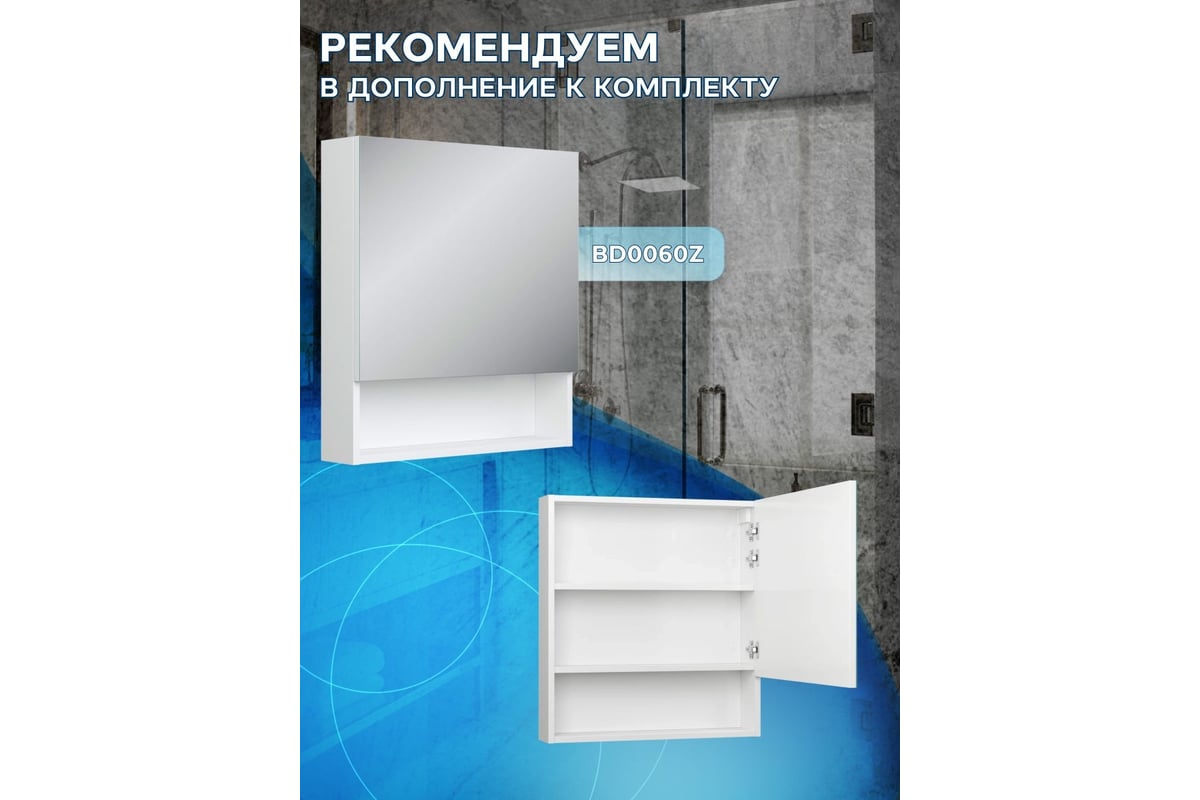Комплект для ванной Bauedge 4 предмета (Тумба подвесная Blackwood 60 графит + Раковина BAU 60x42, с отв. под см-ль + Смеситель Cerama Black, выпуск черный) BD2707