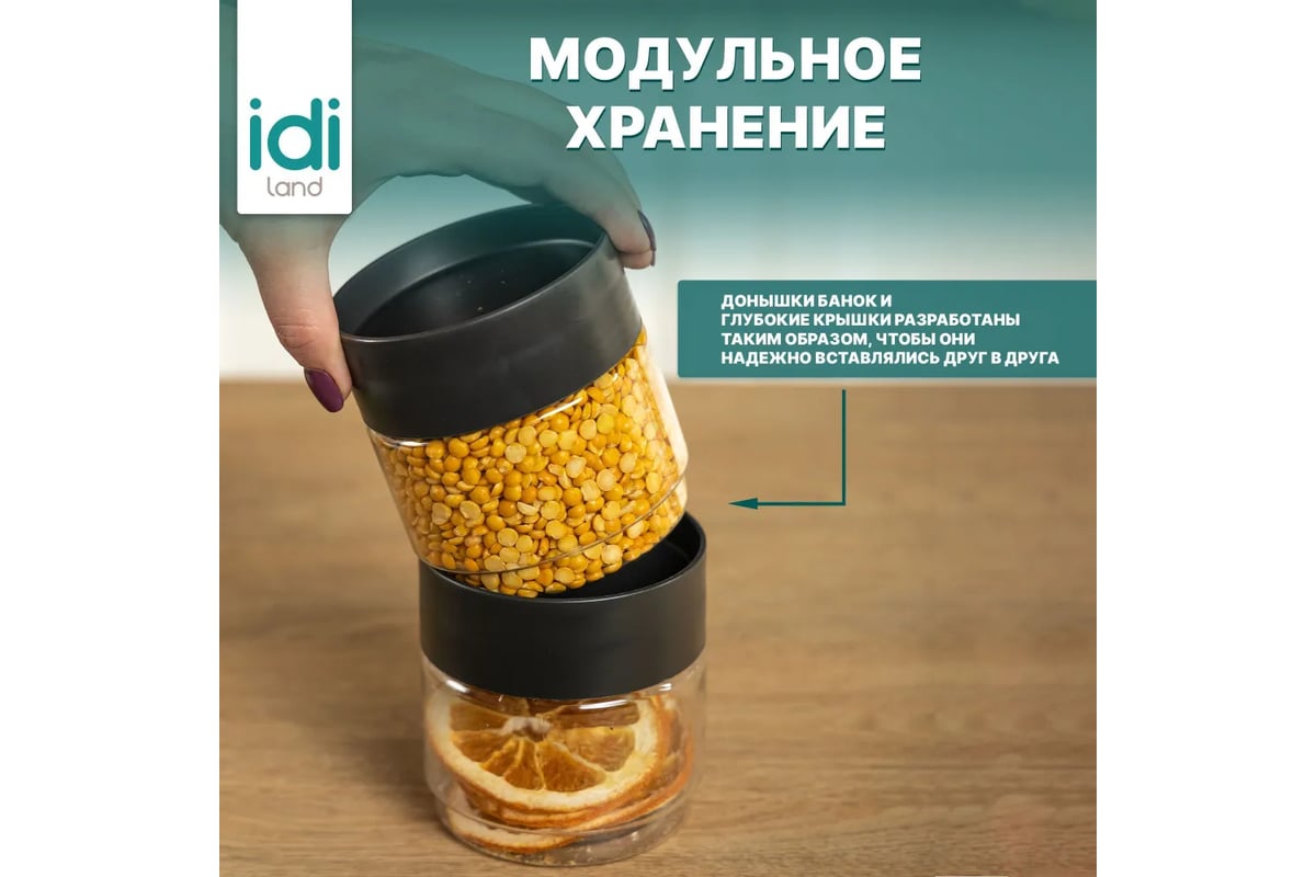 Комплект емкостей для сыпучих продуктов Idiland Asti 0.5 л х 3 шт., черный 241110230/02