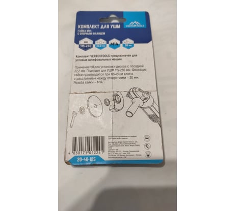 Технические характеристики комплекта для УШМ vertextools 20-40-125