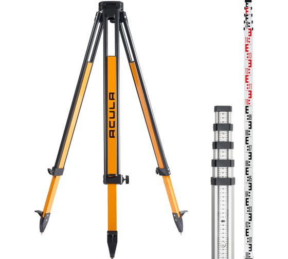 Комплект геодезический ACULA штатив Geo 12-S (высота 99-173 см, фикс. ножек на винтах, алюминиевый нивелирный, площадка 125 мм, резьба 5/8) + Нивелирная рейка TLS 5 (5м) LA00152