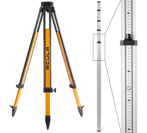 Комплект геодезический ACULA штатив Geo 12-S (высота 99-173 см, фикс. ножек на винтах, алюминиевый нивелирный, площадка 125 мм, резьба 5/8) + Нивелирная рейка TLS 7 (7м) LA00153