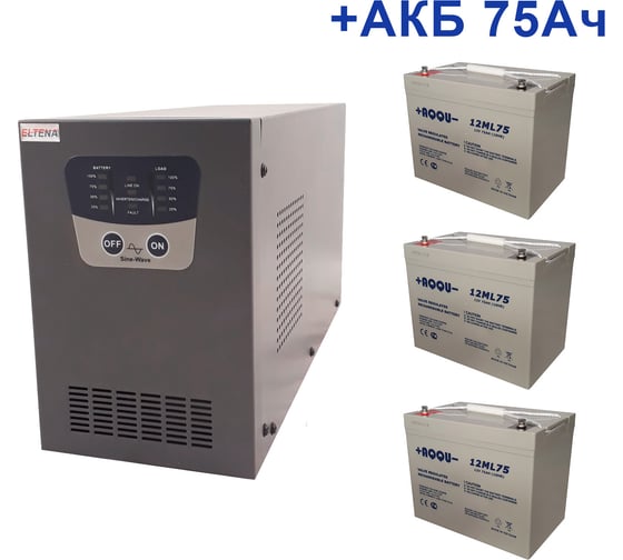 Комплект ИБП ELTENA Intelligent 1500LT2 (1050Вт) + 3шт. АКБ AQQU 12ML75 (12В, 75Ач) I1500LT2/12ML75