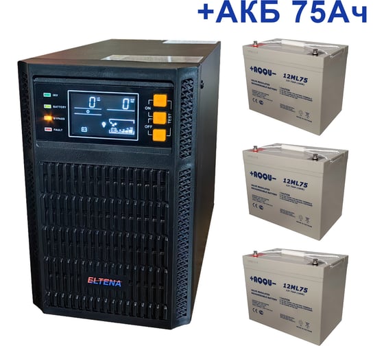 Комплект ИБП ELTENA Monolith B 1000LT (1000Вт) + 3шт. АКБ AQQU 12ML75 (12В, 75Ач) MB1000LT/12ML75