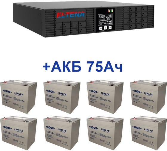 Комплект ИБП ELTENA Monolith B3000RTLT (3000Вт) + 8шт. АКБ AQQU 12ML75 (12В, 75Ач) MB3000RTLT/12ML75