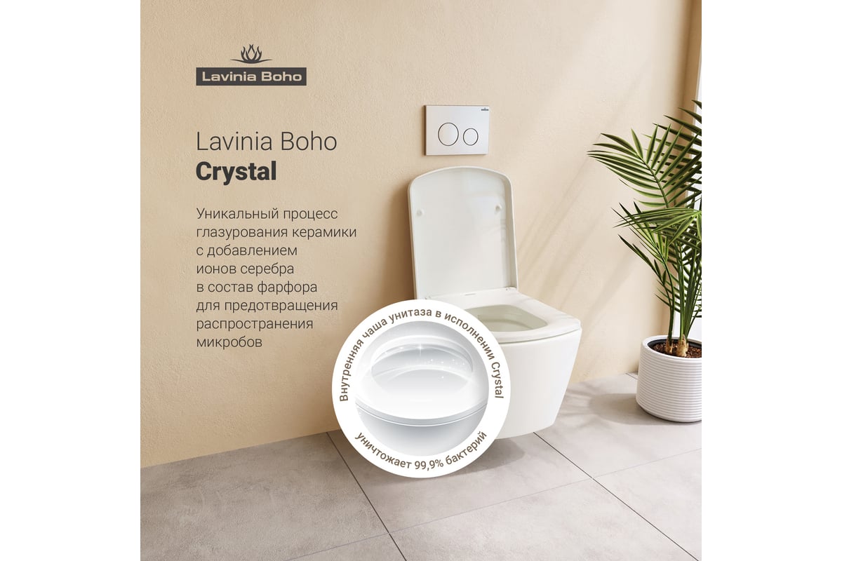 Санитарный фарфор Lavinia Boho имеет более твердую и гладкую поверхность, нежели сантехнический фаянс. Благодаря современному оборудованию и обжигу керамики при температуре 1250 °С образуется беспористая многослойная глазурь, которая отличается низким коэффициентом водопоглощения и меньше впитывает грязь и запахи.