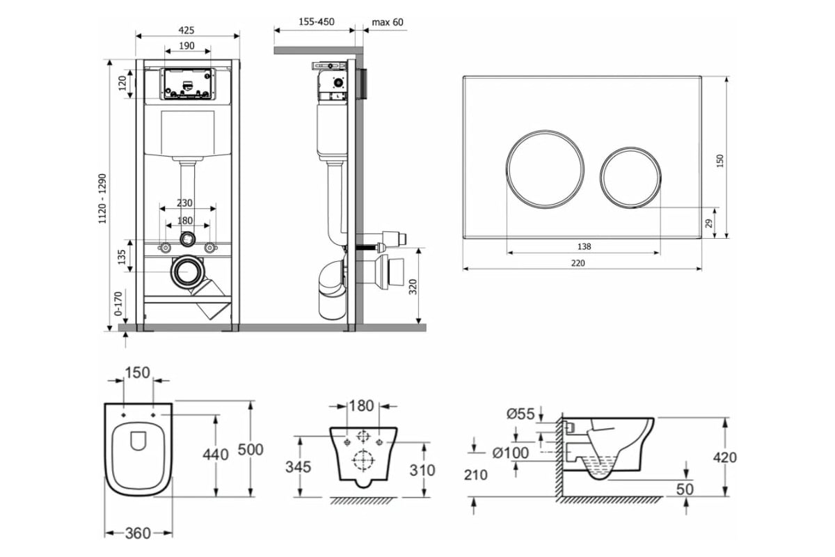 Комплект: инсталляция с унитазом Lavinia Boho Bristol Rimless 6 в 1 77050199 - комплексное предложение, включающее все необходимое для установки и комфортного использования подвесной керамики.