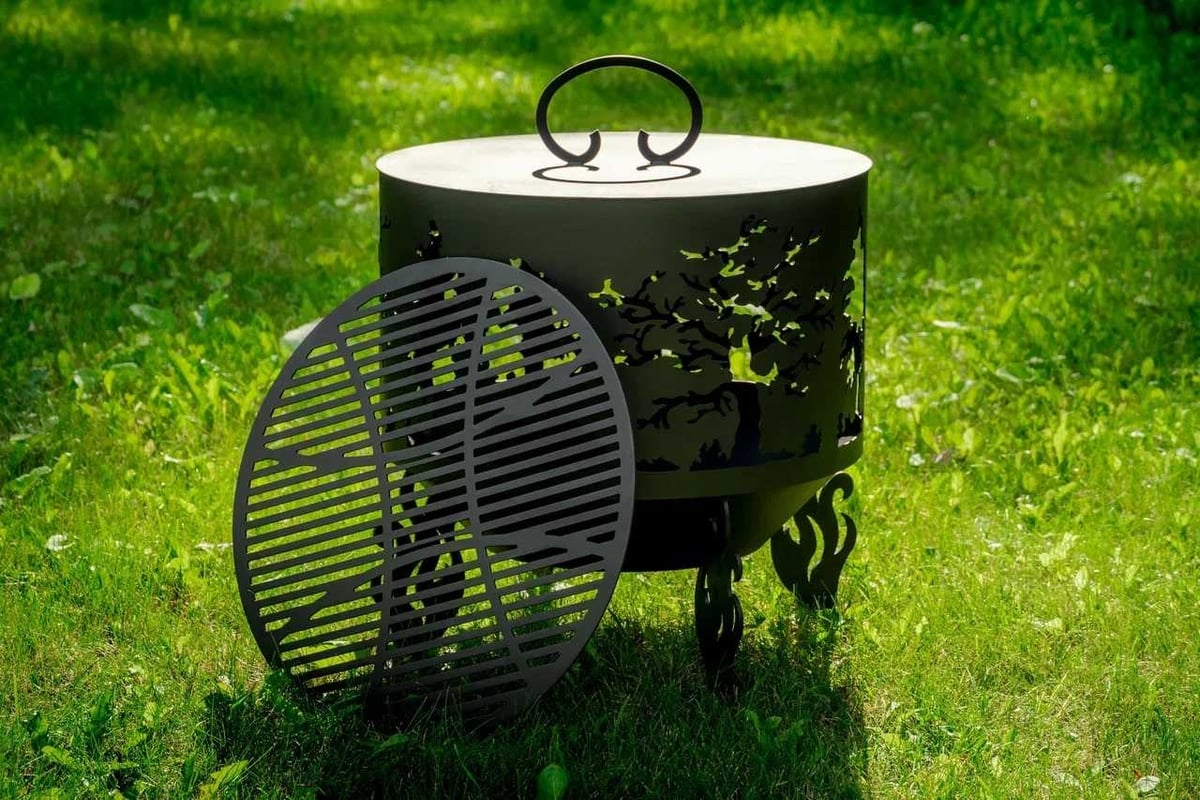 Комплект: костровая чаша FIRE-HOUSE деревья диаметр 50 с решеткой гриль и крышкой пламегасителем Ch8-500деревья