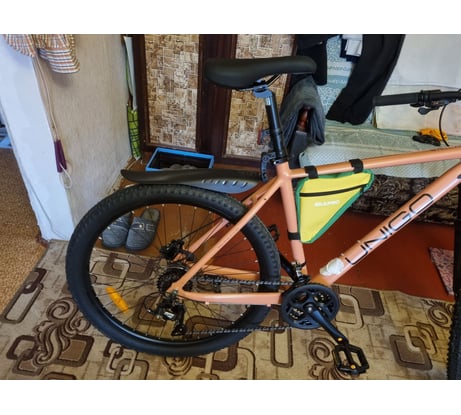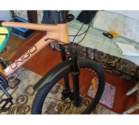 Заднее крыло крепится за подседельную трубу с помощью хомута и имеет регулируемый угол наклона, переднее крепится в шток вилки.