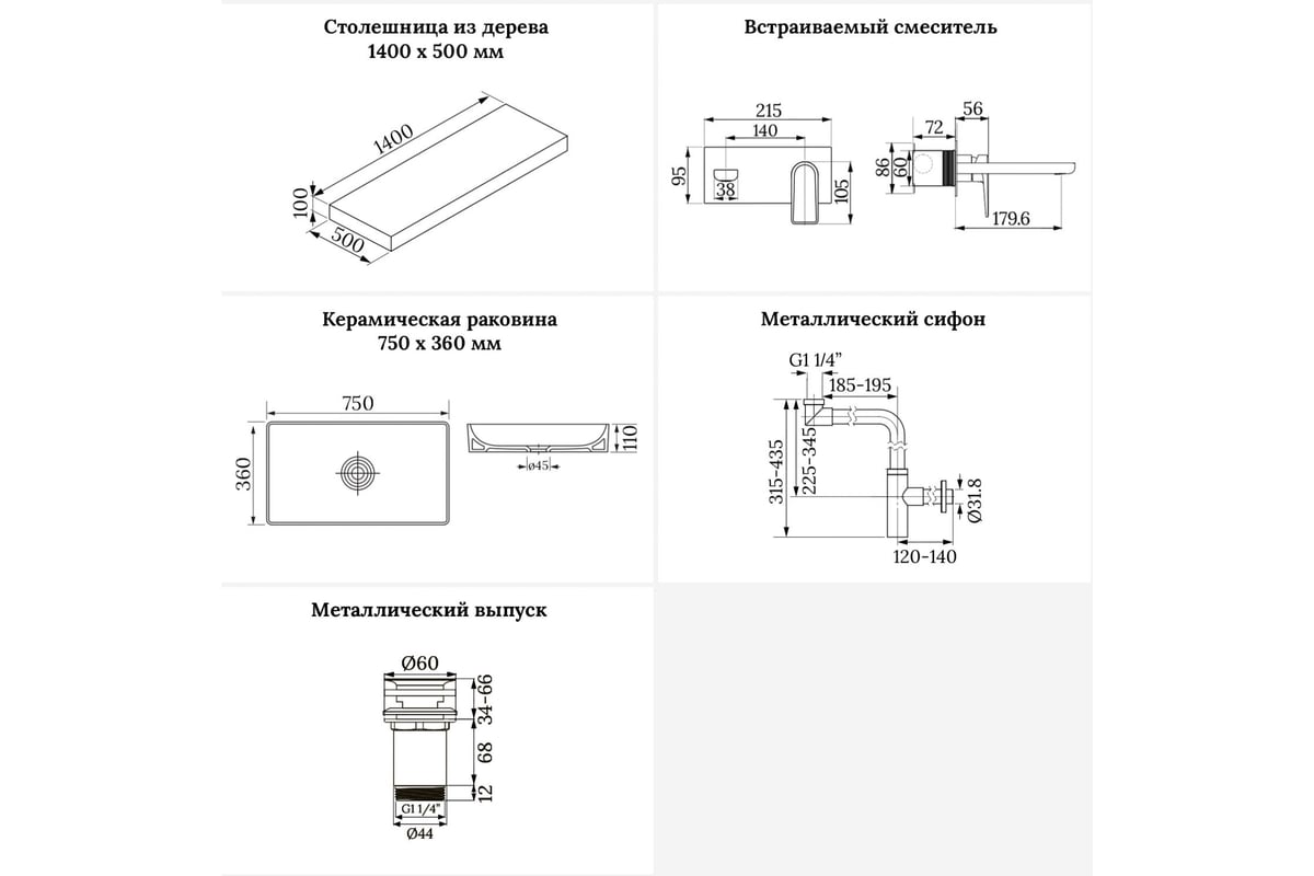 - 1 x cтолешница для раковины, арт. 162024000 (размер 140*50 см, цвет матовый черный)