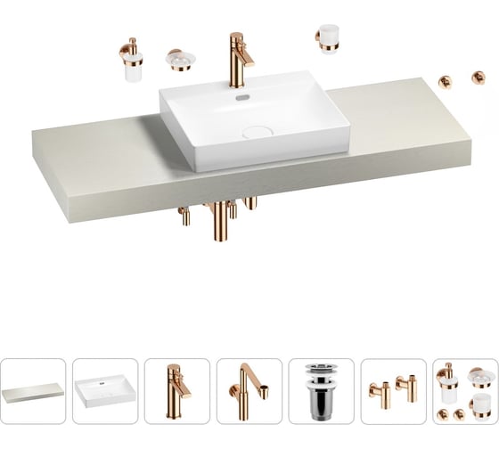 - 1 х смеситель для раковины, арт. 182404000 (цвет розовое золото)