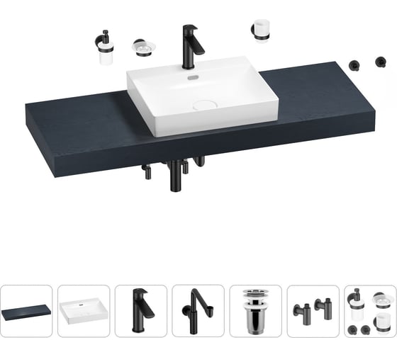 - 1 x cтолешница для раковины, арт. 162008000 (размер 140*50 см, цвет структурный антрацит)