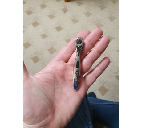 Качество инструмента. Шаг трещетки жёсткий. Торчит язычок переключения за сому трещетку. Головки как будто из набора за низкую цену.