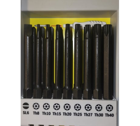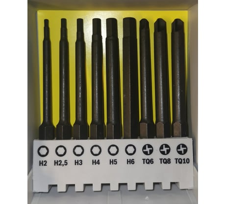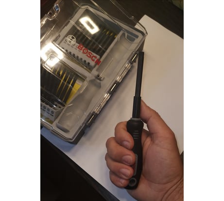 Набор покупался года 3 назад как доп к Bosch 2607017164 (если будет необходимость в редкой бите чтобы не бежать в магазин). Краска. Зачем-то биты покрашены в черный цвет и от использования краска слазит. Выглядят такие биты жалко. Сама ручка иногда проскальзывает, надо постоянно держать ее сильно. При этом биты крепко держатся в ручке - при падении со 2 этажа на асфальт бита не вылетела. В шуруповерте также используются, никаких проблем ни для шурика, ни для бит не наблюдается. Коробка прочная (хотя так не выглядит), есть крепление на стену.