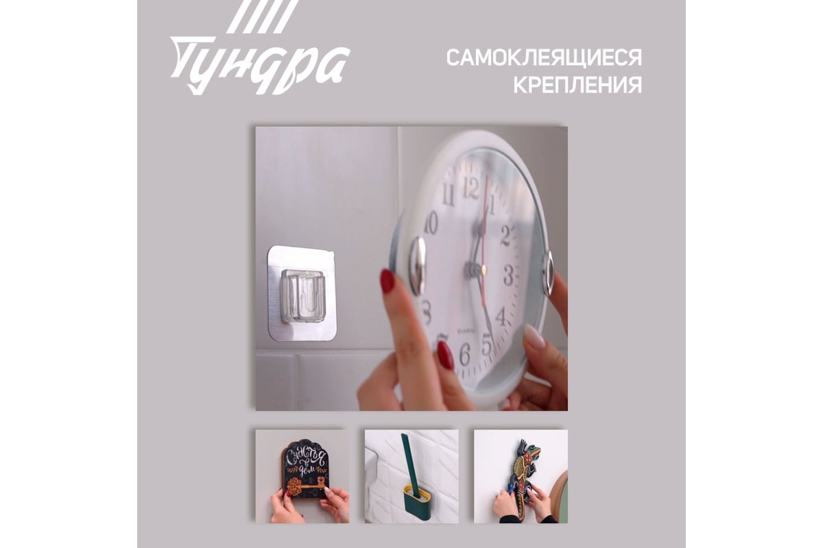 Комплект настенных держателей ТУНДРА krep с клейкой поверхностью, 60x60 мм, цвет хром 7993203