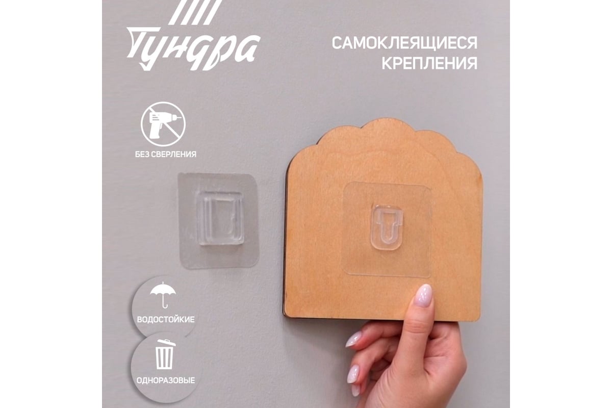 Комплект настенных держателей ТУНДРА с клейкой поверхностью, 60x60x10 мм, цвет золото 7993202