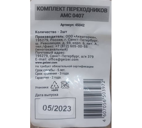 Отзывы о комплекте переходников Гейзер 2 шт. AMC 0407 45042