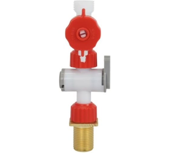 Готовый набор для перекрытия воды и её фильтрации в системе инсталляции. Включает кран и фильтр, обеспечивая удобное подключение и защиту арматуры бачка от примесей.